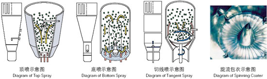 包衣:非常有效的物料床底噴系統(tǒng),并采用新型三層結(jié)構(gòu)噴嘴,為粉末、顆粒或微丸作薄膜包衣。
