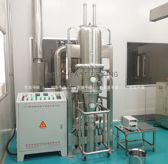 采用噴霧工藝,特別適用微輔料,熱敏性物料,功效比FL沸騰制粒機高1—2倍;