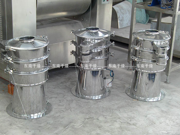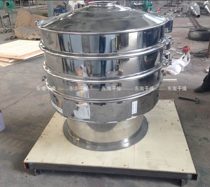 本機由料斗、振蕩室、聯(lián)軸器、電機組成。振蕩室內有偏心輪、橡膠軟件、主軸、軸承等組成。可調節(jié)的偏心重錘經(jīng)馬達驅動傳達到主軸中心線,在不平衡的狀態(tài)下產(chǎn)生離心力,使物料強度改變,在篩內形成軌道旋渦。重錘調節(jié)器的振幅大小可根據(jù)不同物料和篩網(wǎng)進行調節(jié)。