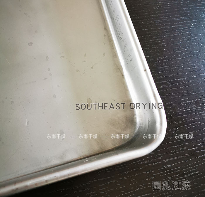 非標定制不銹鋼手工盤:根據客戶尺寸要求定制烘盤,結構為不銹鋼板剪折后四邊焊接并焊縫打磨,底面可沖孔,優點為可定制任意尺寸,滿足客戶需求;