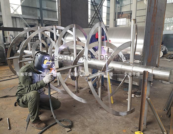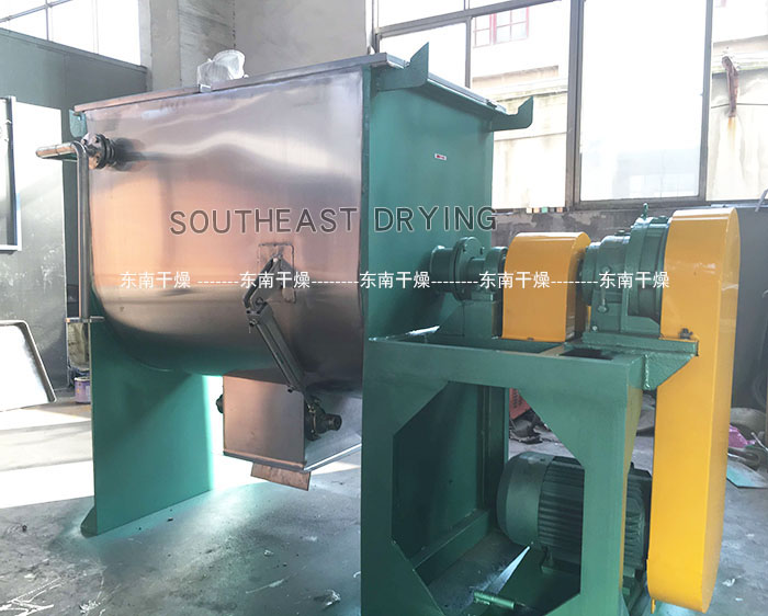 該機型由容器、螺旋攪拌葉片和傳動部件組成:螺旋葉片一般做成雙層或三層,外層螺旋將物料從兩側向中央匯集,內層螺旋將物料從中央兩側輸送,形成對流混合。
