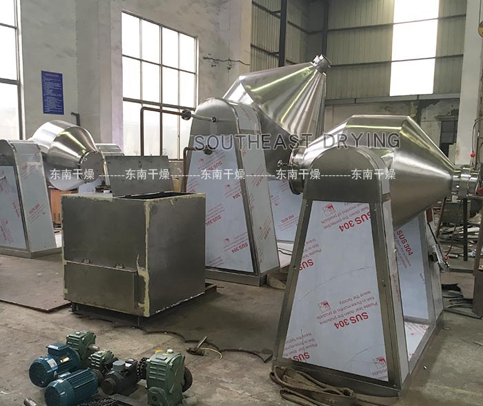 本機適用于醫(yī)藥、化工、食品、建材等行業(yè)的粉狀、粒狀物料的混合。